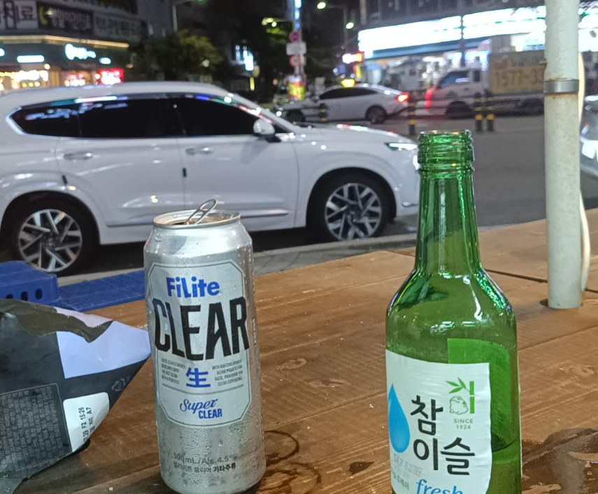 and I mixed Asahi beer with chamisul,it actually tasted really good, and I enjoyed the relaxed, local atmosphere.