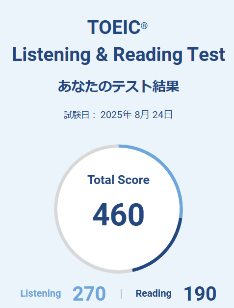 I took the TOEIC exam on April 20th, 2025.TOEIC 4月20日試験を受けてきました。